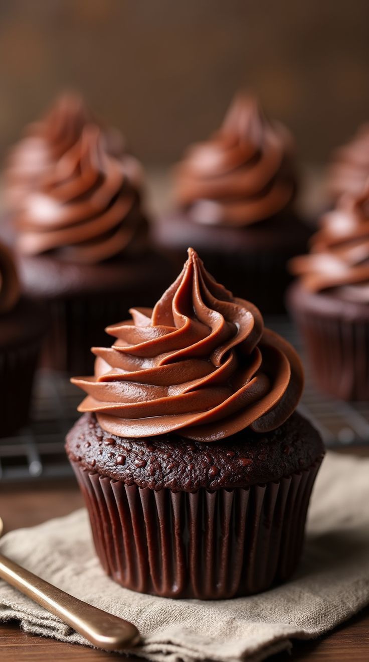 A soft, moist chocolate cupcake topped with creamy, velvety chocolate frosting — a true chocolate lover’s dream!