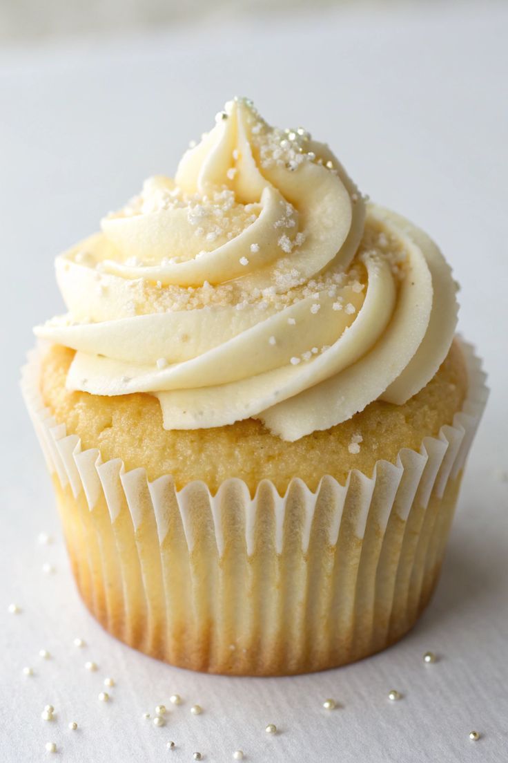 A soft, fluffy vanilla cupcake crowned with silky vanilla frosting β€” simple, classic, delicious.